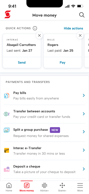 We designed a feature for our mobile app to enable users to calculate and request money from their contacts for shared expenses. Increasing Interac e-Transfer requests means more money comes in to the bank, which aligns with strategic priorities to grow deposits.